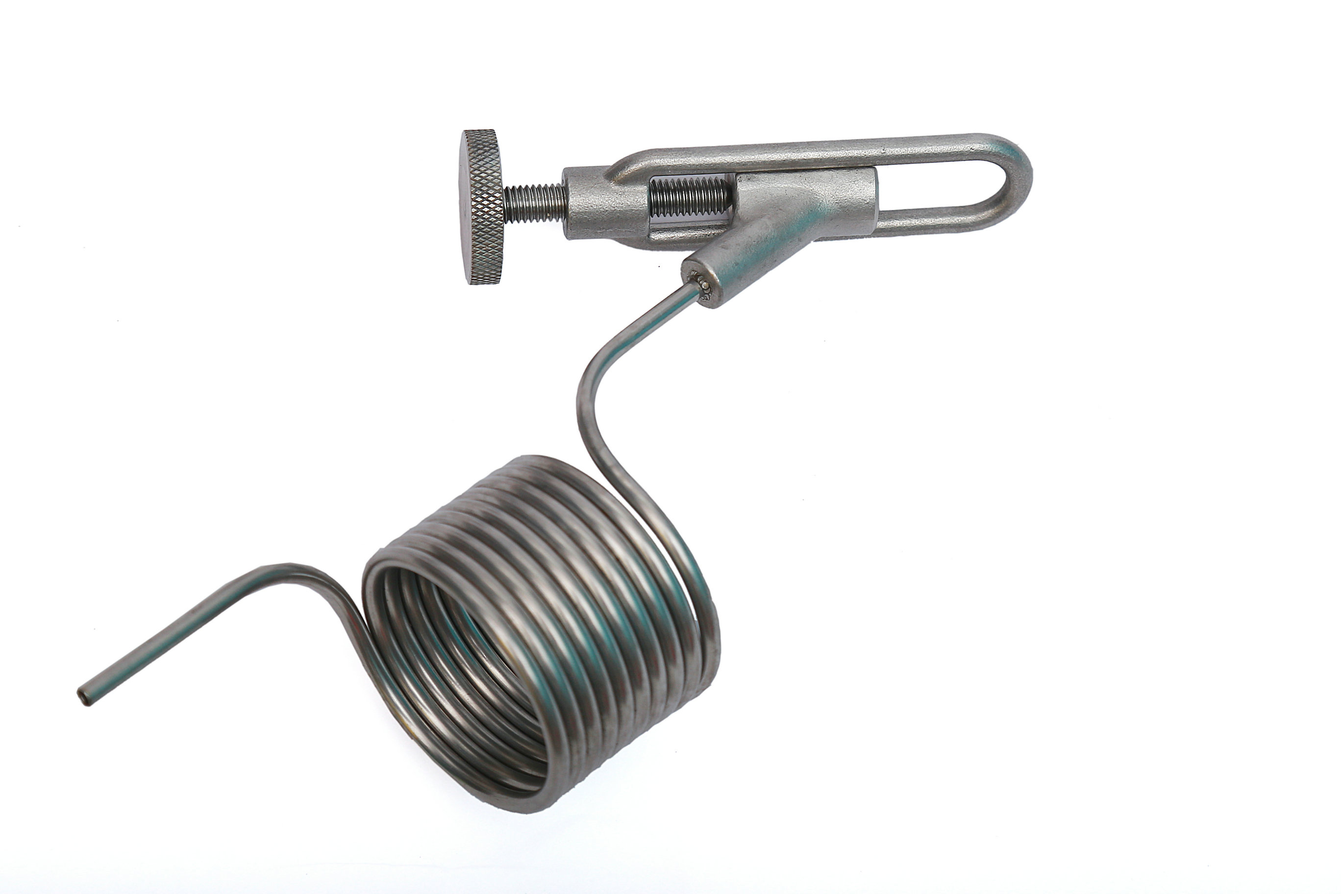 消沫器具備有特種功能,鏈接口掛在螺旋式取樣閥和旋塞式取樣閥出口上,(設計為掛式)。管內徑光潔度光滑,取樣閥打開流向到消沫器盤管上,經過盤管螺旋走向,減少啤酒氣體壓力,出酒很少有沫,保證取樣時的酒液口感度 同時也可以滿足于各種生產工藝需求,也可以用來打酒設備。該啤酒消沫器不銹鋼材質,衛生設計,滿足于啤酒業等各種工藝領域。